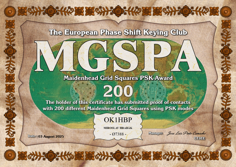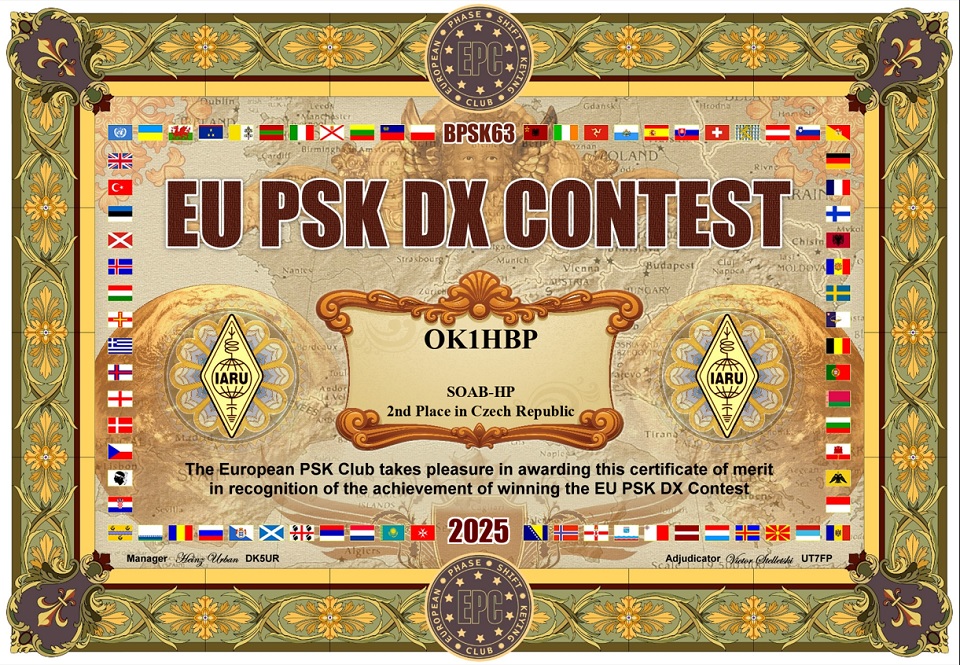 Dostal jsem se k doladění logů na digimódy, přibylo pár diplomů. Jeden za všechny, moje oblíbené PSK.