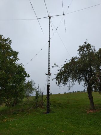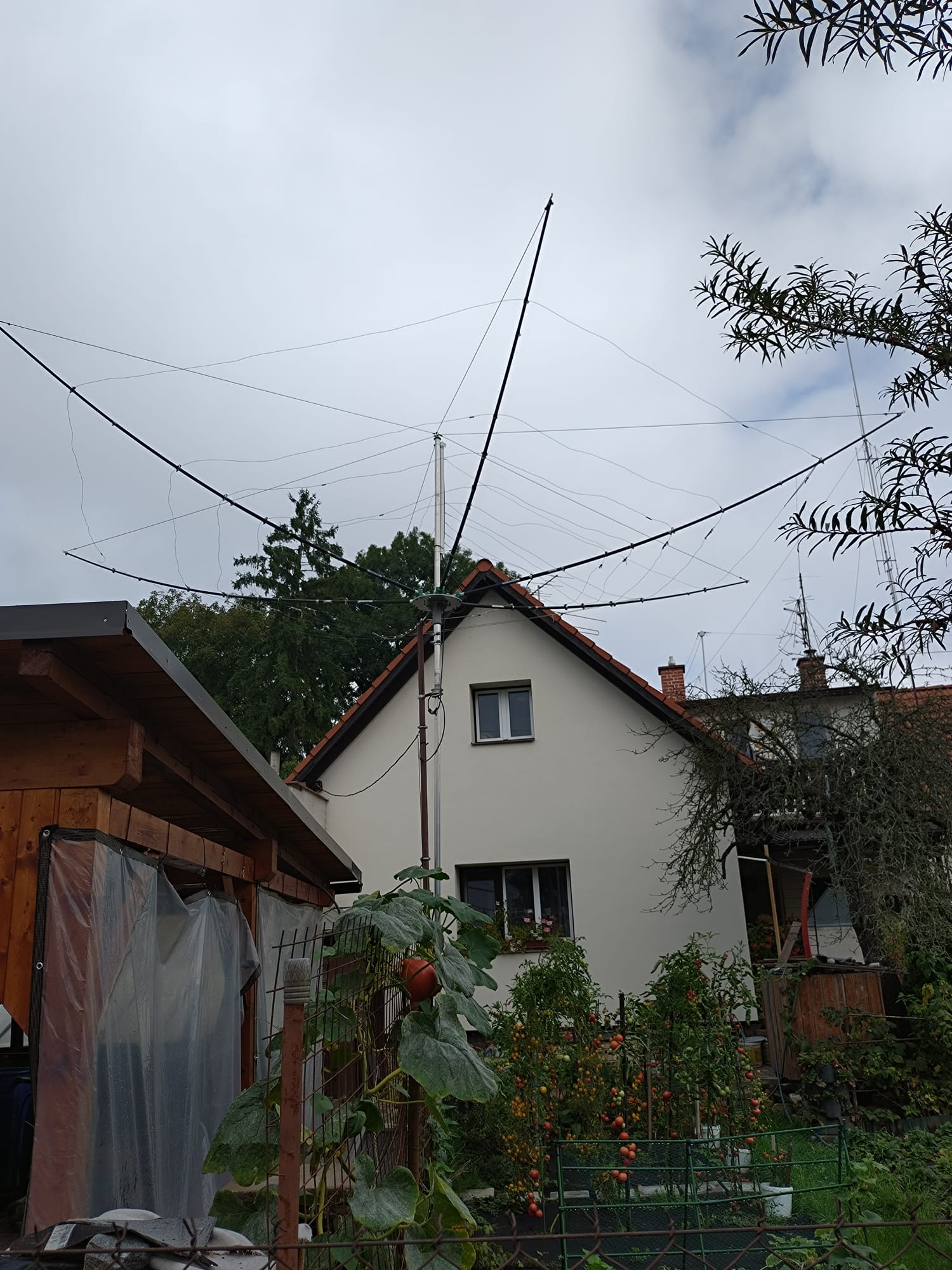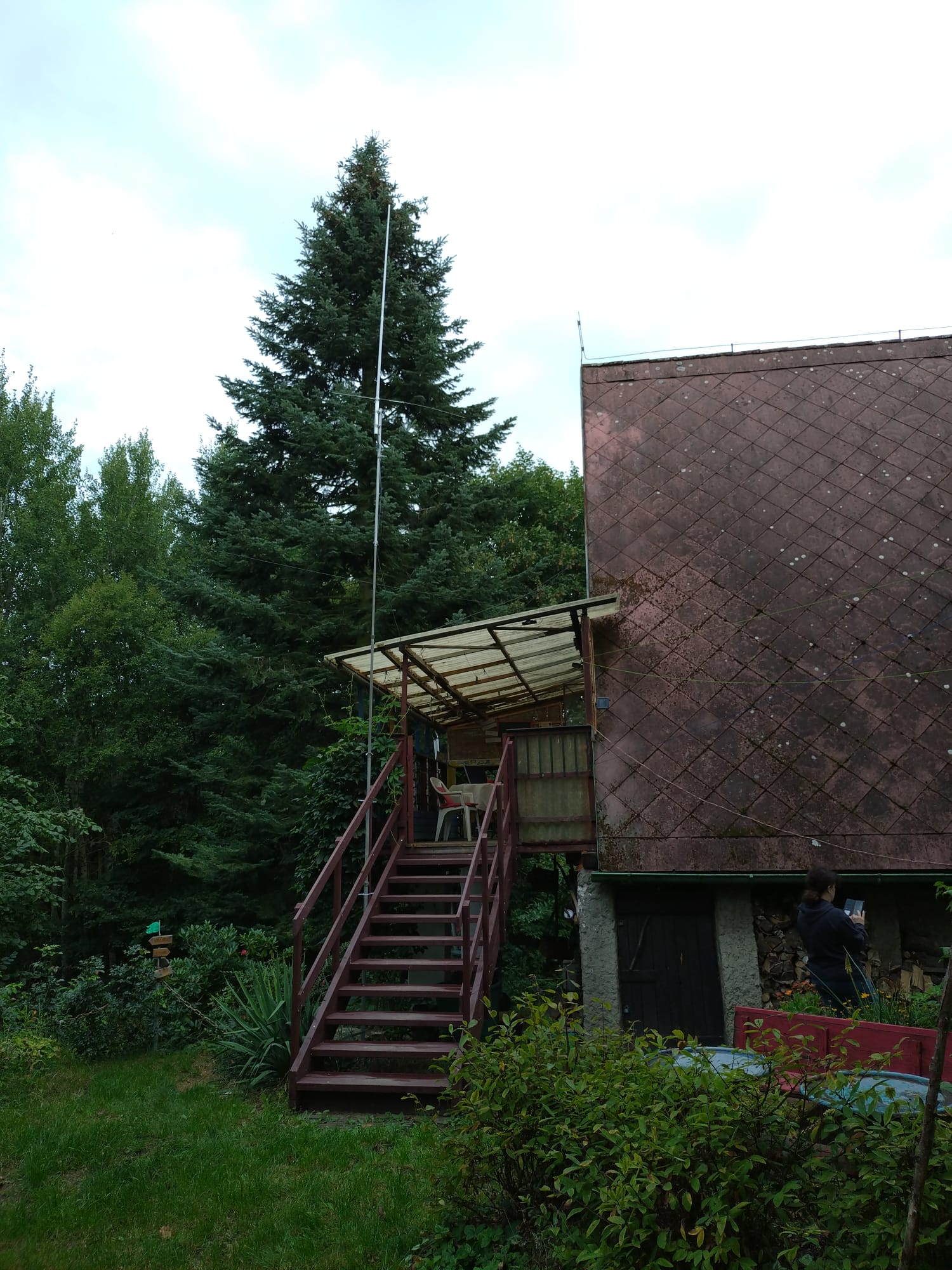 Z pozůstalosti oo Pavlovi OK1PKO jsem koupil V-2000 – třípásmovou anténu 50/144/430MHz. Z chalupy jsem dovezl stožárek a světe div se, budu občas z chaty QRV na těchto pásmech. Instalace tedy zatím vždy před vysíláním, ale začínám se rozhlížet, že bych anténu nainstaloval na trvalo, uvidíme.