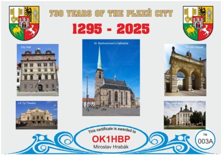 Hned po Novém roce mě potěšil diplom za podíl na aktivitě k 730. výročí založení Plzně. Díky. Rád se zúčastním dalších podobných aktivit.